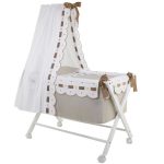 Imatge composta per estructura de moises mod. 22, Pabello, suport de pabello, vestit, cobrellit, coixí, matalàs i somier.